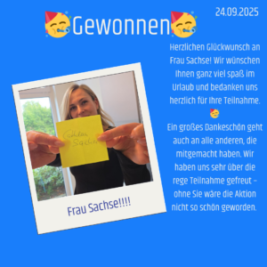 Die Gewinnerin oder der Gewinner wird am 24.09.2025 öffentlich bekanntgegeben. Der Rechtsweg ist ausgeschlossen. - Hinweis zu Meta